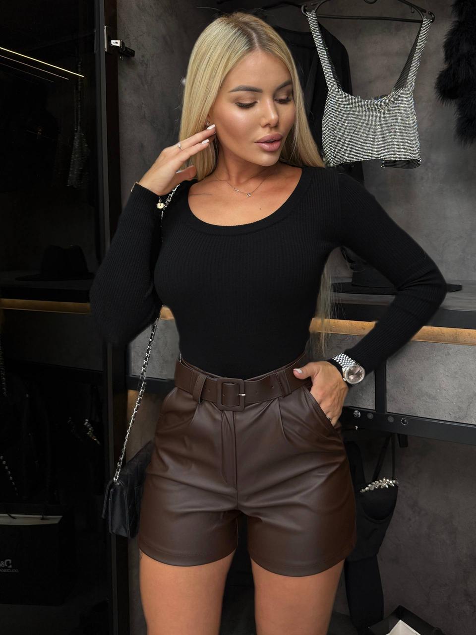Шорти з поясом для милих дам "Екошкіра". Розміри: 42-44, 46-48